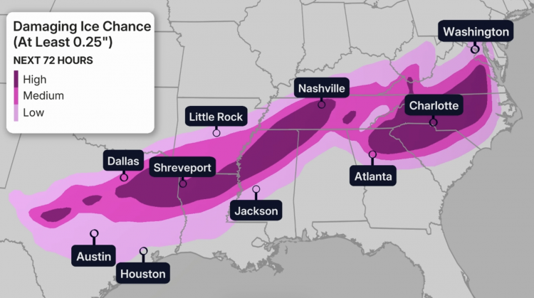 사진/ weather.com 주말(24일- 25일)을 앞두고 강력한 북극 한파가 텍사스 전역으로 확산되면서, 주 전역에 겨울 폭풍 경보와 한파 주의보가 발효됐다....