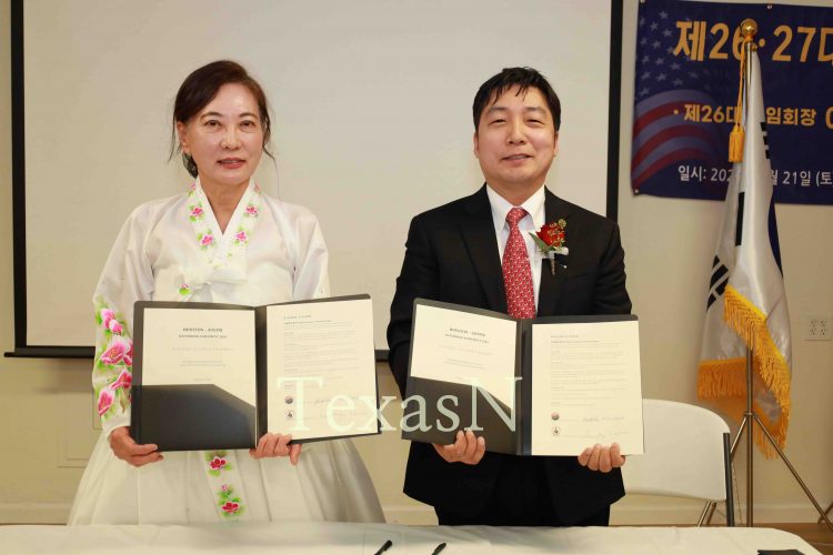 사진/ 휴스턴 한인회(회장 김형선, 사진오른쪽)와 오스틴 한인회(회장 강수지, 사진 왼쪽)가 텍사스 한인사회의 광역 네트워크 강화를 위해 자매결연을 맺었다. 휴스턴...