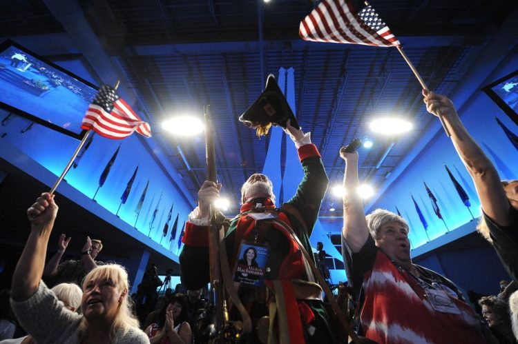 사진/ CNN( William Temple (C), in colonial dress, and other Tea Party supporters cheer at the Tea Party Unity...