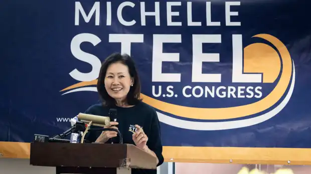 사진/ 오렌지카운티레지스터 (Rep. Michelle Steel addresses supporters at her election office in Buena Park, CA on Monday, Nov. 4, 2024....