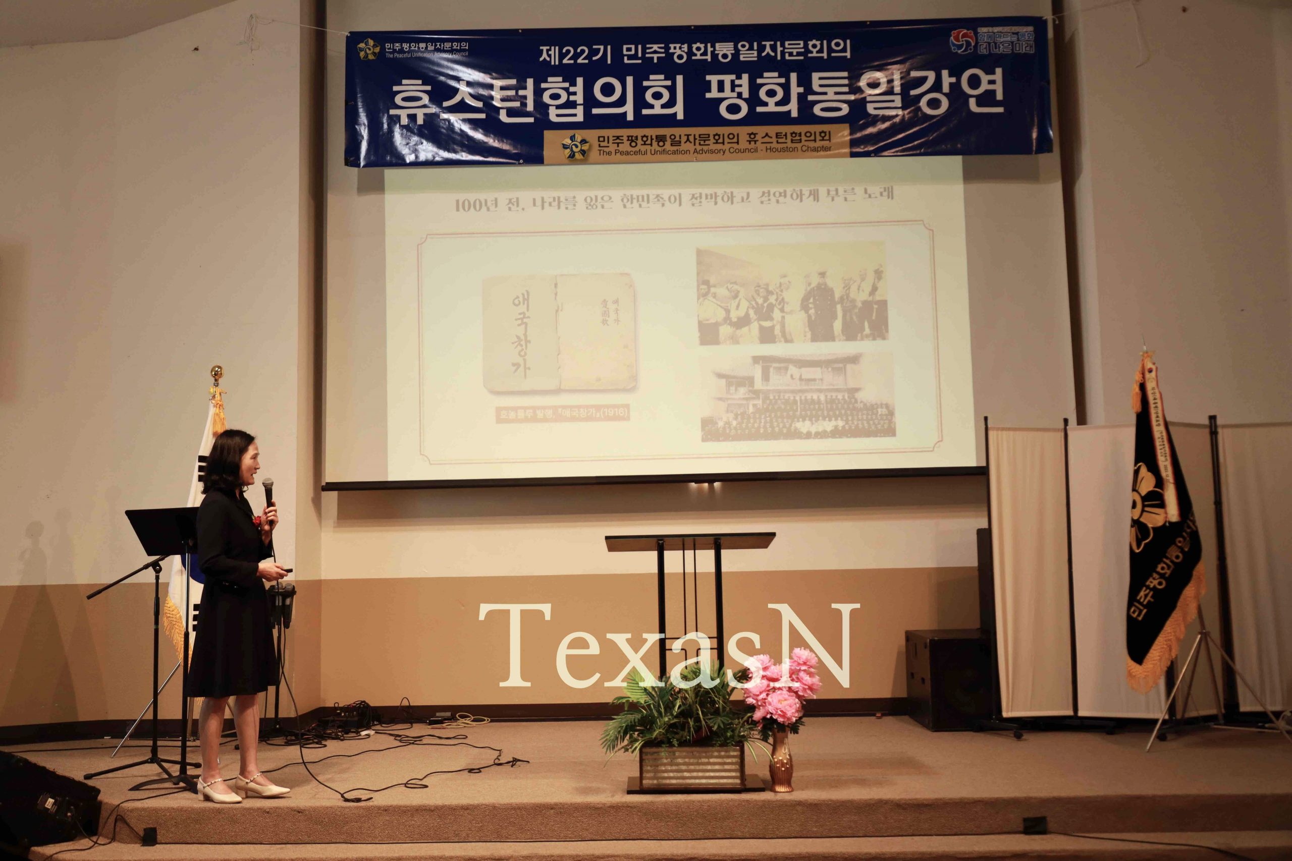 [텍사스N=휴스턴] 항일 독립운동의 정신을 담은 노래와 역사 강연이 어우러진 문화 행사가 미국 남부 휴스턴에서 열렸다. 민주평화통일자문회의 휴스턴협의회(협의회장 박은주)는 지난 14일 ‘한반도 평화를 여는 한민족의 노래’를 주제로 통일 강연 콘서트를 개최했다