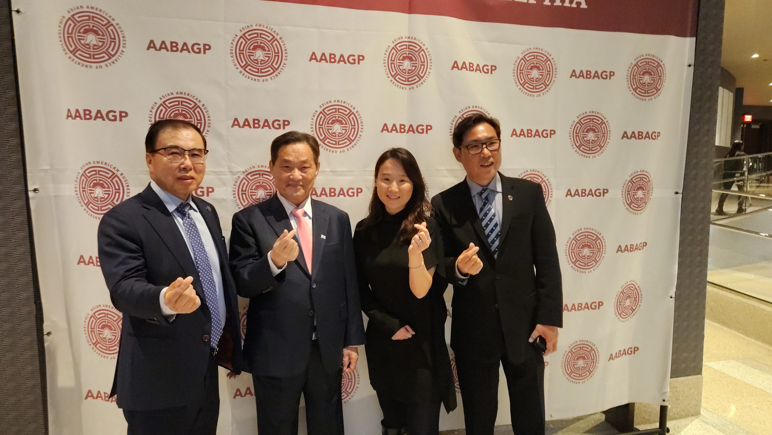 사진/ 필라델피아 아시안 아메리칸 비즈니스 연맹이 주최한 ‘2025 골든 이글 어워즈 디너(Golden Eagle Awards Dinner)’에 참석한 미주한인상공회의소총연합회 강문선 수석부회장(사진오른쪽)과 수잔 노 차세대위원(오른쪽에서 두번째).