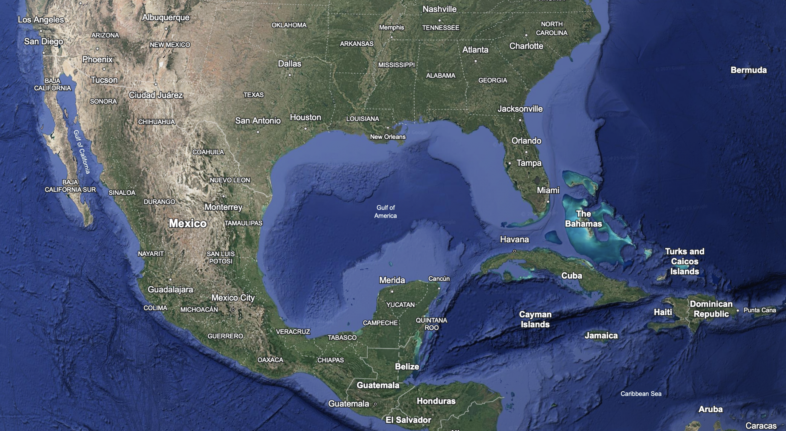 사진/ 구글어스에는 멕시코만을 아메리카만으로 표기하고 있다.