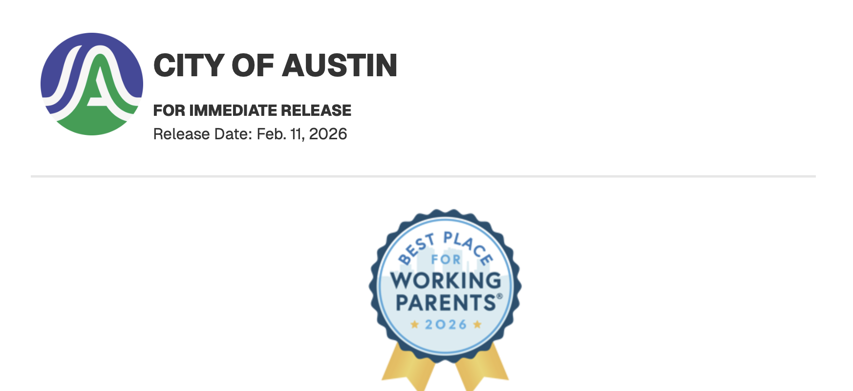 오스틴시, 2026년 ‘일하는 부모를 위한 최고 직장’ 선정…8년 연속