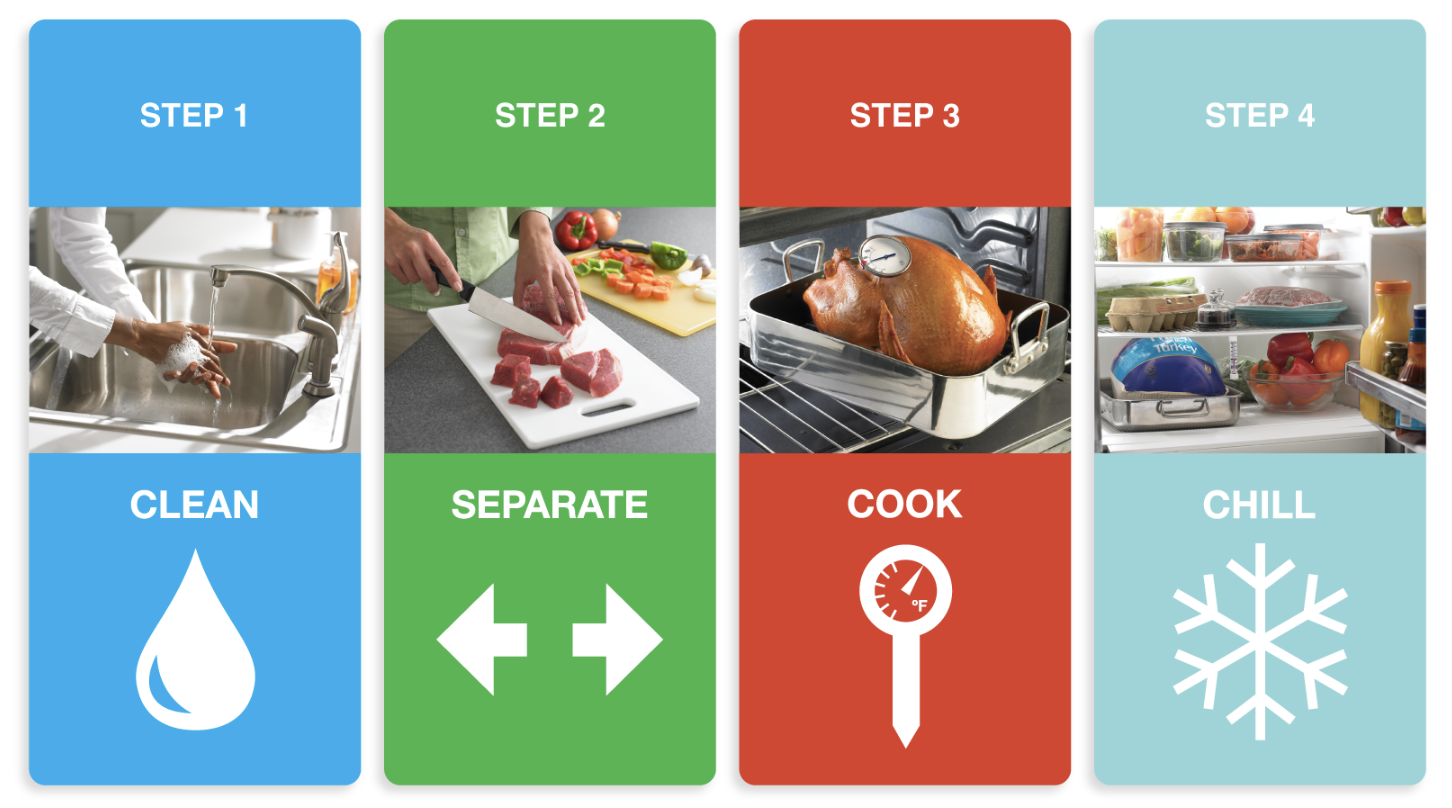 전문가들은 음식을 다루기 전후에 20초 동안 손을 씻을 것을 권한다. 이는 생일 축하 노래 ‘Happy Birthday’를 한 번 부르는 데 걸리는 시간과 비슷하다. CDC는 조리된 음식은 상온에 2시간 이상 두지 말고 바로 냉장 보관할 것을 권고했다. 냉장 보관한 음식은 3~4일 안에 섭취해야 안전하다.
