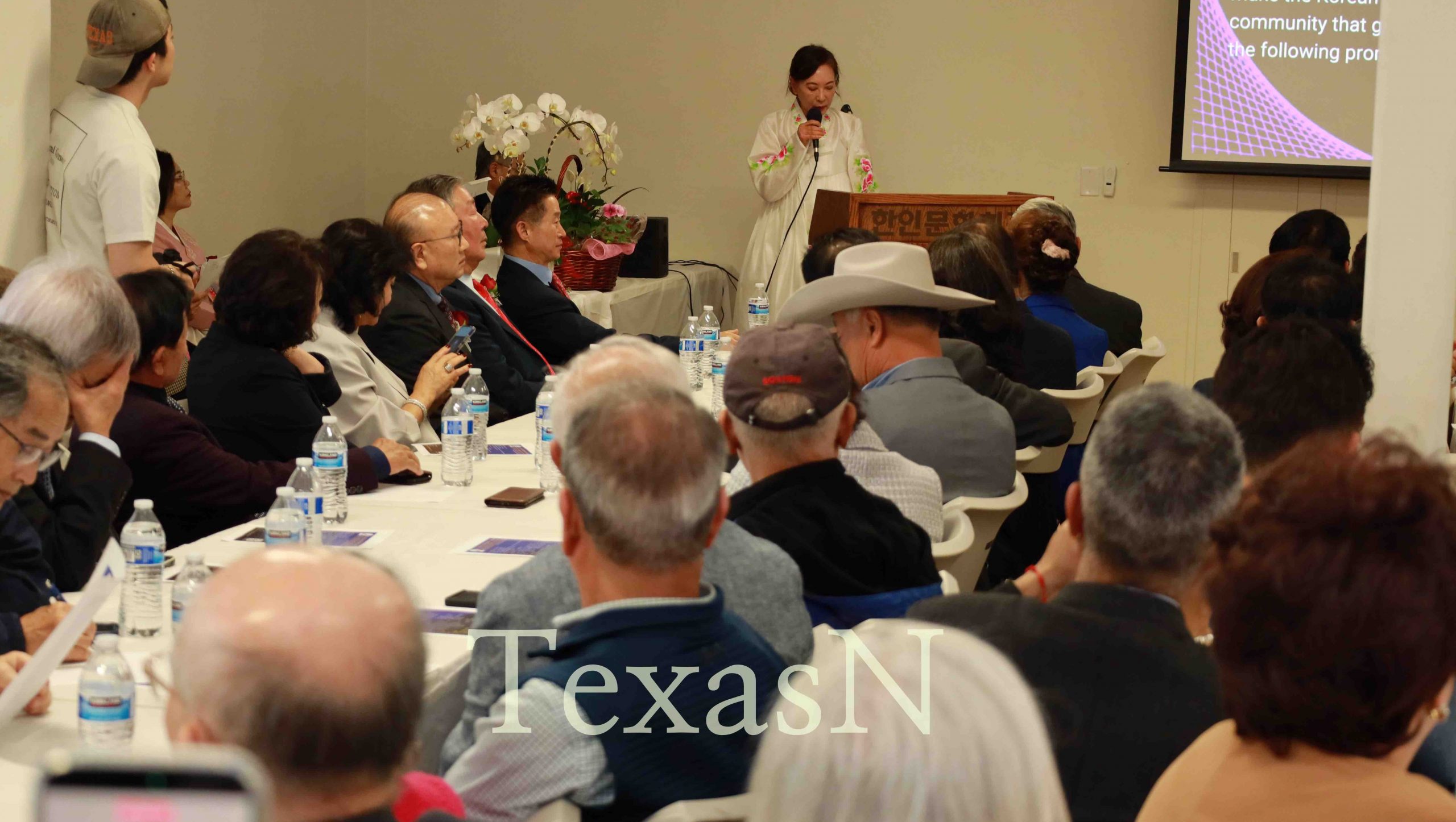 사진/ 오스틴 한인회 강수지 회장 취임식 당시 강수지 회장이 취임사를 전하고 있다.