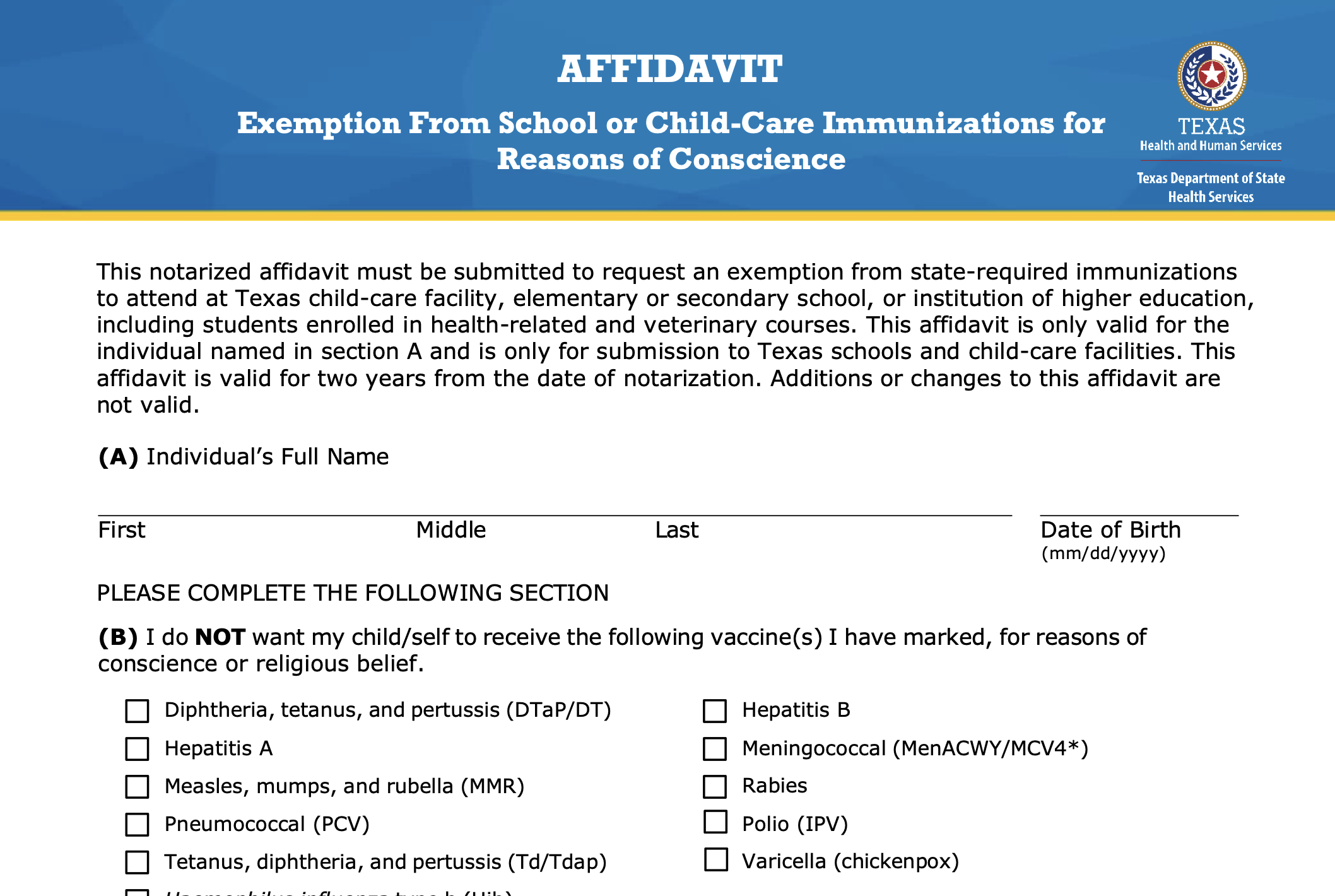 앞으로 텍사스 학부모들은 자녀의 학교 필수 예방접종을 면제받기 위해 주 보건당국으로부터 우편으로 서류를 받아야 하는 불편을 겪지 않아도 된다. 새로운 법 시행으로 온라인에서 직접 면제 신청서를 내려받을 수 있게 됐다.