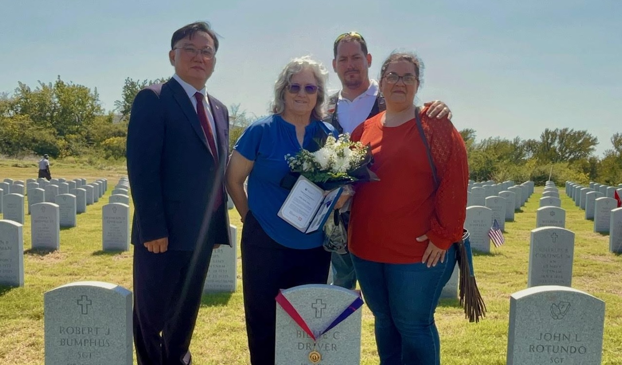 주달라스출장 도광헌 소장은 드라이버 상병의 묘역에 평화의 사도 메달을 수훈한 뒤 “드라이버 상병과 같은 영웅들의 숭고한 희생 덕분에 오늘의 대한민국이 자유롭고 번영하는 나라로 설 수 있었다”며 감사와 경의를 표했다.